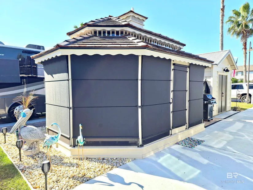 Welcome to one of the most coveted RV resorts in Orange Beach—Terry Cove Motor Coach Resort Lot . This private, gated community is designed exclusively for Class A Motor Coaches, offering a unique blend of luxury and convenience. With top-tier amenities like two swimming pools, a clubhouse, complimentary laundry facilities, and a fenced dog park, this resort is ideal for those who want to enjoy the best of coastal living.Terry Cove also provides easy access to the newly constructed Orange Beach golf cart trail, which leads directly to shopping, dining, and of course, the stunning Gulf of Mexico beaches. Each of the 47 spacious lots is 40’x70′, offering plenty of room for your RV, and this particular lot stands out due to its prime location near one of the pools and the clubhouse.The property boasts a beautifully furnished 12’x18′ screened gazebo—perfect for relaxing or entertaining in your outdoor living space. With ample room for an outdoor kitchen, you’ll be ready to host friends and family in style. The 10×20 Coach House is a standout feature, complete with a custom-built Murphy bed, built-in closets, drawers, and two desks, offering both functional storage and workspace.This is an exceptional opportunity to own a premium lot in one of Orange Beach’s most desirable RV resorts. Buyer to verify all information during due diligence. Don’t miss out on this rare find!